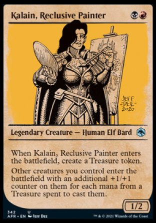 When Kalain enters, create a Treasure token (A Treasure is an artifact with ", Sacrifice this artifact: Add one mana of any color.").