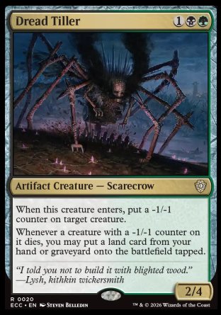 Whenever a creature with a -1/-1 counter on it dies, you may put a land card from your hand or graveyard onto the battlefield tapped.