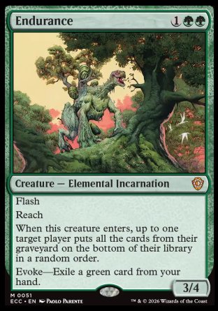 No art, yet. Latest combos with this card • Dress Down + Endurance + Specific Color Card • Endurance + Rushed Rebirth + Specific Color Card • Sundial of the Infinite + Endurance + Specific Color Card