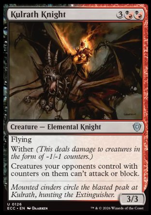 Flying (This creature can't be blocked except by creatures with flying or reach.)Wither (This deals damage to creatures in the form of -1/-1 counters.)