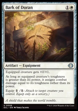As long as equipped creature's toughness is greater than its power, it assigns combat damage equal to its toughness rather than its power.