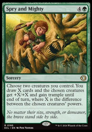 Choose two creatures you control. You draw X cards and the chosen creatures get +X/+X and gain trample (This creature can deal excess combat damage to the player or planeswalker it's attacking.) until end of turn, where X is the difference between the chosen creatures' powers.