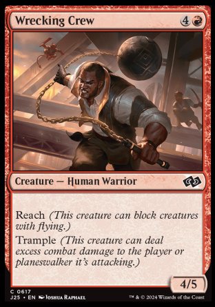 Reach (This creature can block creatures with flying.)Trample (This creature can deal excess combat damage to the player or planeswalker it's attacking.)