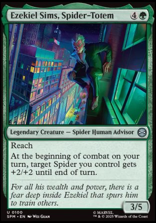 At the beginning of combat on your turn, target Spider you control gets +2/+2 until end of turn.