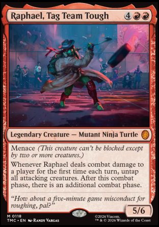Whenever Raphael deals combat damage to a player for the first time each turn, untap all attacking creatures. After this combat phase, there is an additional combat phase.