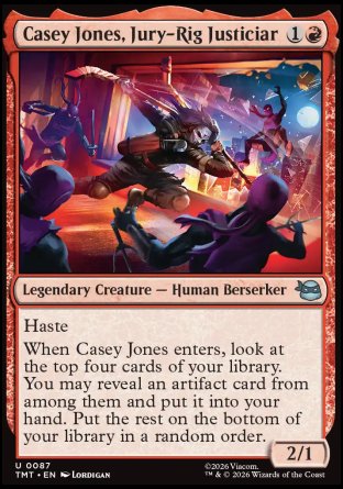 When Casey Jones enters, look at the top four cards of your library. You may reveal an artifact card from among them and put it into your hand. Put the rest on the bottom of your library in a random order.