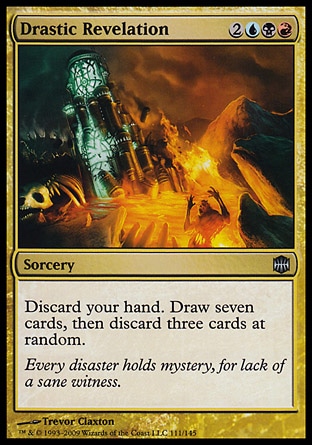 Discard your hand. Draw seven cards, then discard three cards at random.
