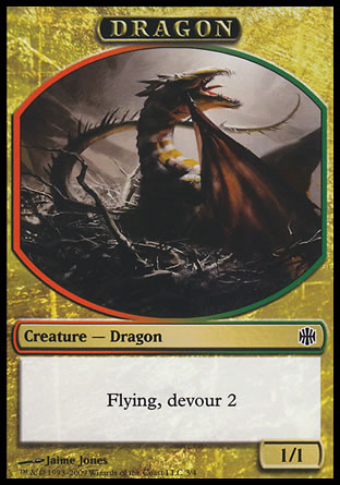 Flying (This creature can't be blocked except by creatures with flying or reach.), Devour 2 (As this object enters, you may sacrifice any number of creatures. This permanent enters with two +1/+1 counter(s) on it for each creature sacrificed this way.)