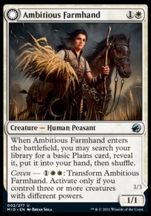 Coven — : Transform this creature. Activate only if you control three or more creatures with different powers.