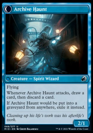 If Archive Haunt would be put into a graveyard from anywhere, exile it instead.