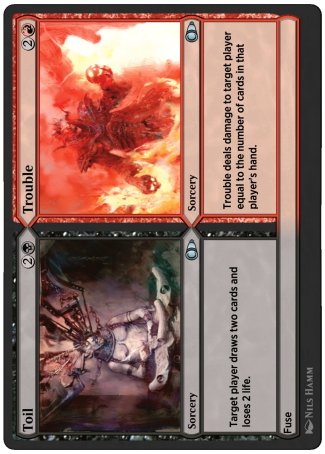 Trouble deals damage to target player equal to the number of cards in that player's hand.