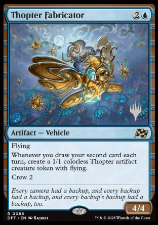 Whenever you draw your second card each turn, create a 1/1 colorless Thopter artifact creature token with flying.
