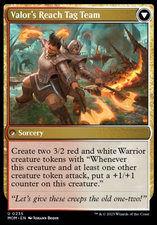 When this Siege enters, up to two target creatures each get +2/+0 and gain vigilance (Attacking doesn't cause this creature to tap.) and haste (This creature can attack, and as soon as it comes under your control.) until end of turn.